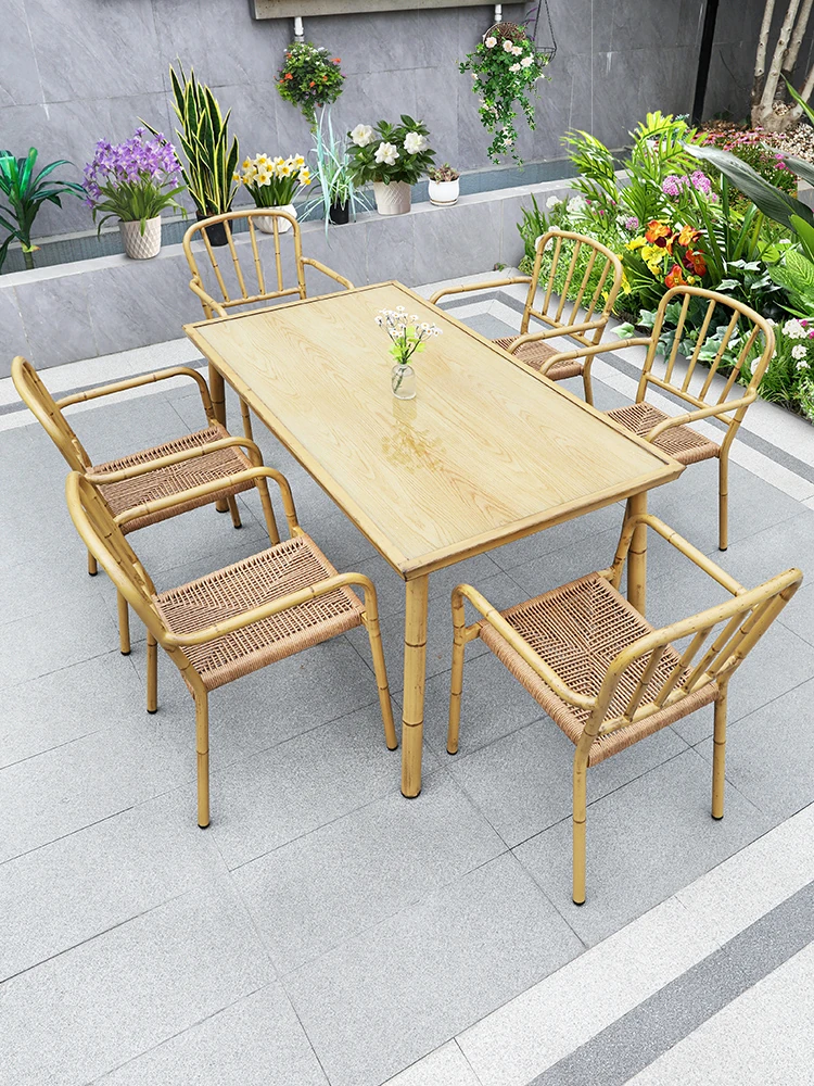 新中式高級感溢れる別荘用アウトドアテーブル&チェアセット|リビング・庭に最適なソファ・コーヒーテーブル・ラウンジチェア|くつろぎのひとときを提供します!
