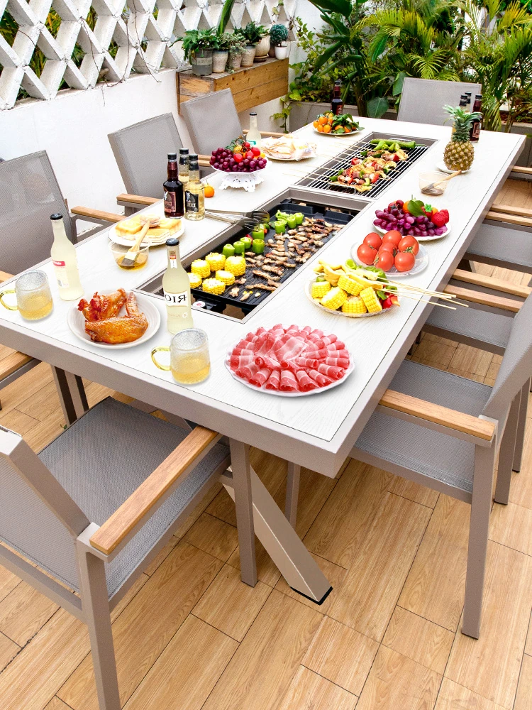 アルミニウム製テーブル&チェアセット|バルコニーや庭に最適なアウトドアBBQテーブル|防水・UVカットで快適な焼き肉体験を!