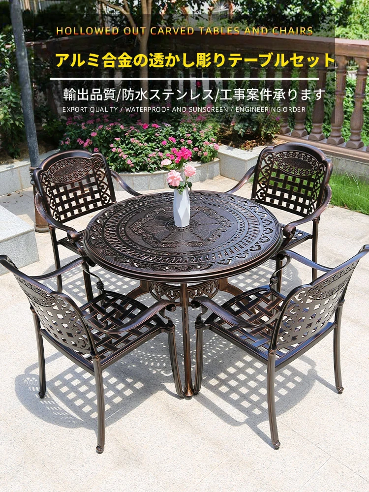 アルミ鋳造のアウトドアテーブルセット - リラックスできるバルコニーや庭に最適!美しいデザインで、別荘やテラスを華やかに演出します。耐久性抜群で、屋外でも安心してお使いいただけます。