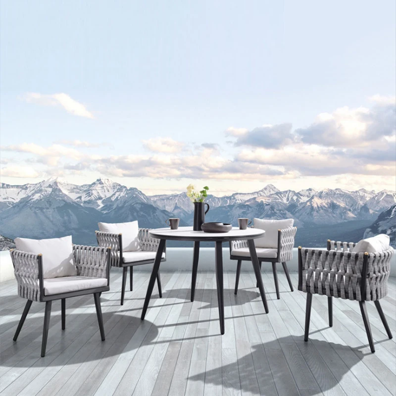 防水・現代的なデザインの屋外庭園テーブルセット!シンプルでスタイリッシュなアルミ製ダイニングテーブルと椅子の組み合わせ。バルコニーや露天での使用に最適、あなたのアウトドア空間を彩ります!