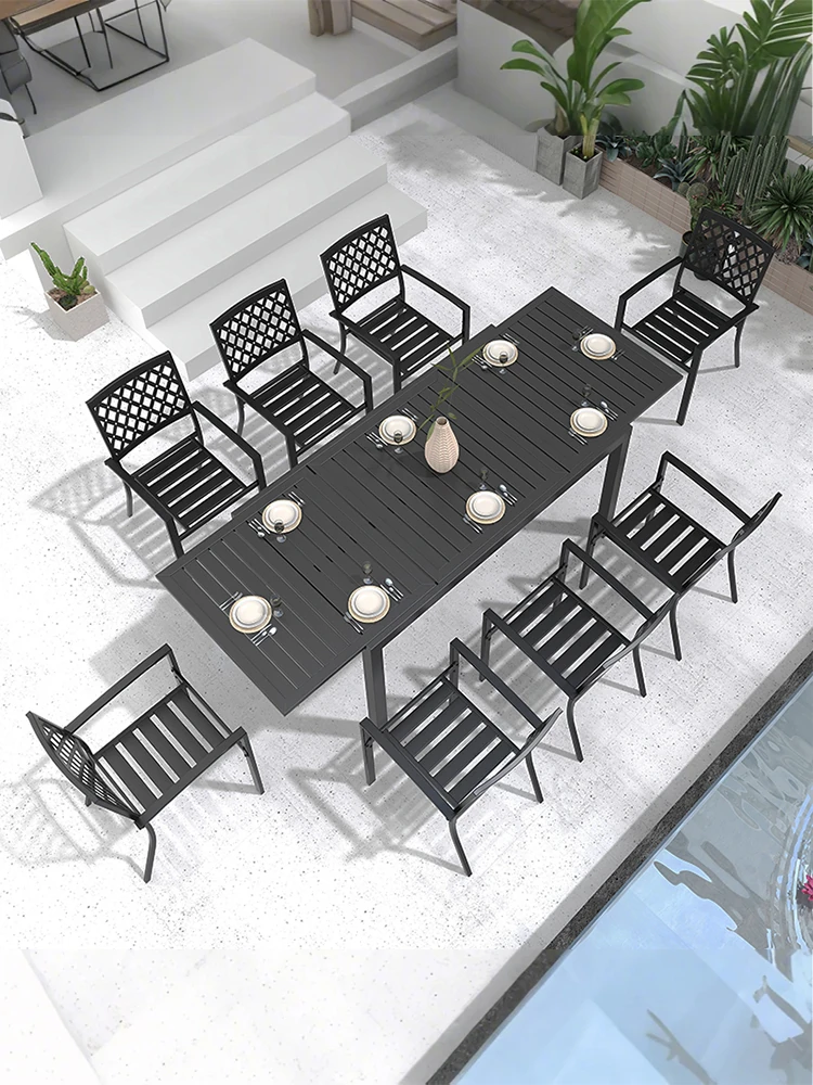 Vanpai Outdoor Aluminum Alloy Table and Chair Set - Waterproof, Sun-Resistant, and Expandable Patio Dining Table for Gardens, Villas, and Terraces. Perfect for Outdoor Gatherings!