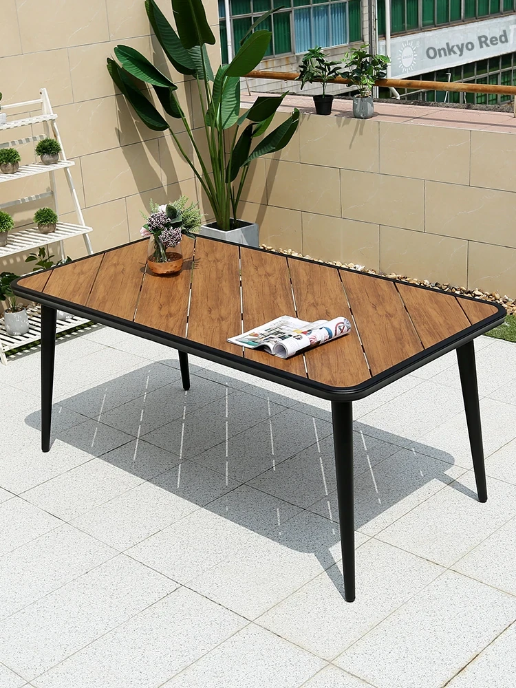 Vanpai Outdoor Waterproof and Sunproof Rectangular Aluminum Patio Table with Marble Tile Top – Perfect for Relaxing in Your Yard!