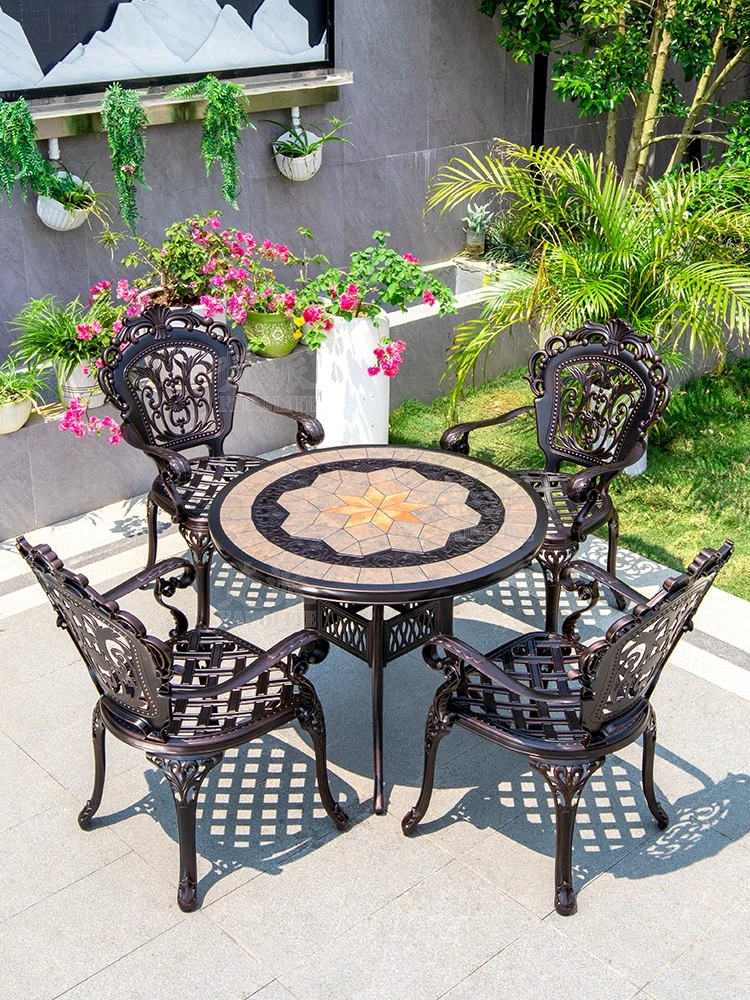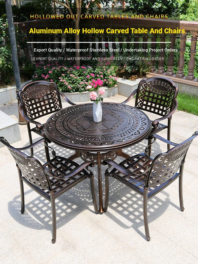 Outdoor Patio Dining Set - Elegant Cast Aluminum Table and Iron Chair Combo for Villas and Gardens, Waterproof and Sun-Resistant, Perfect for Relaxing on Your Terrace!