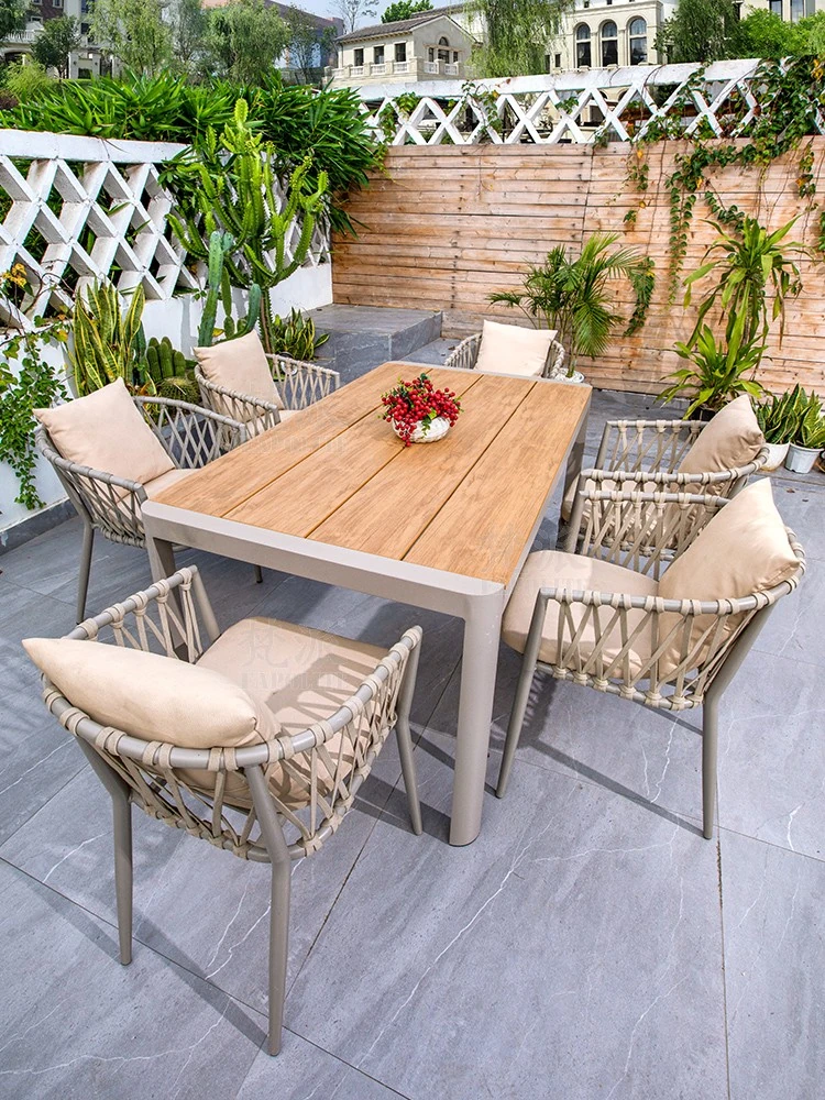 VANPAI Outdoor Patio Dining Table Set - Stylish Rattan and Plastic Wood Furniture, Designer Single Sofa Combination for Balcony and Garden Enjoyment