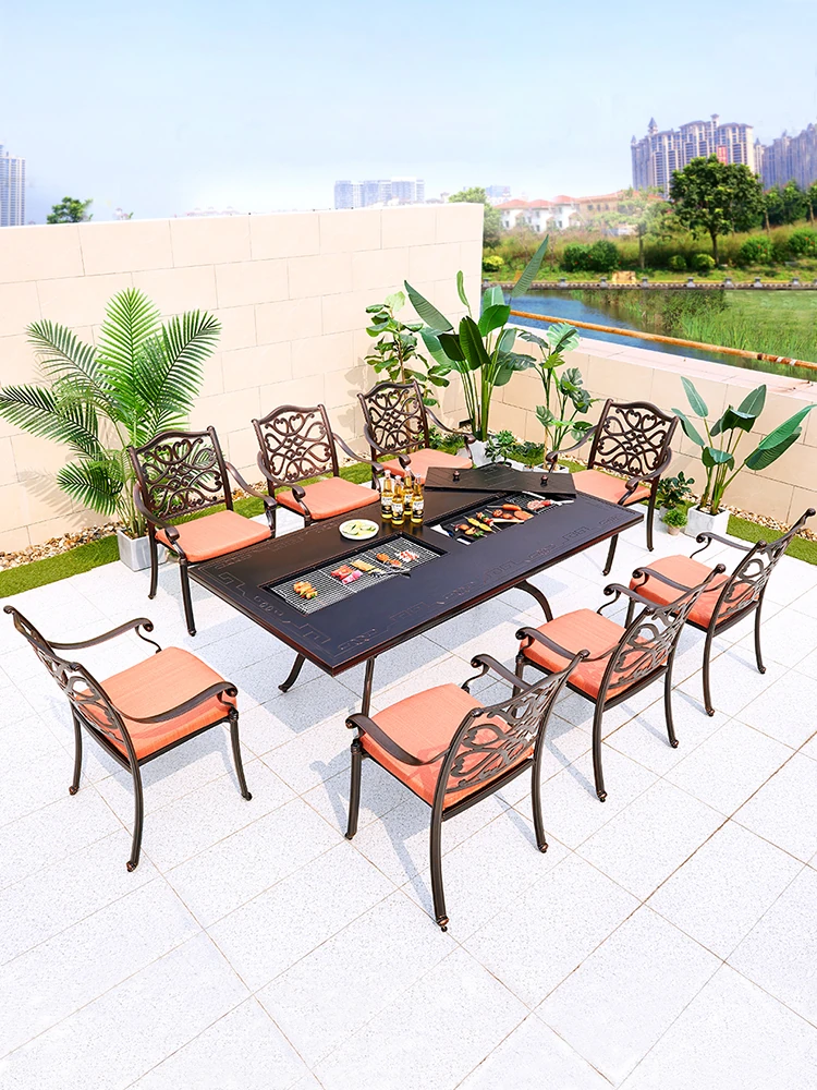 Outdoor BBQ Table and Chair Set - Durable Cast Aluminum Dining Table for Gardens, Patios, and Villas - Versatile Home Use BBQ Station