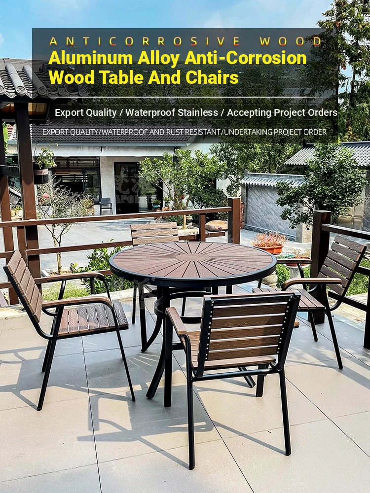 Outdoor Waterproof and Sun-Resistant Chinese Style Coffee Shop and Milk Tea Store Table and Chair Set for Patios, Balconies, and Gardens – Perfect for Relaxing in Style!