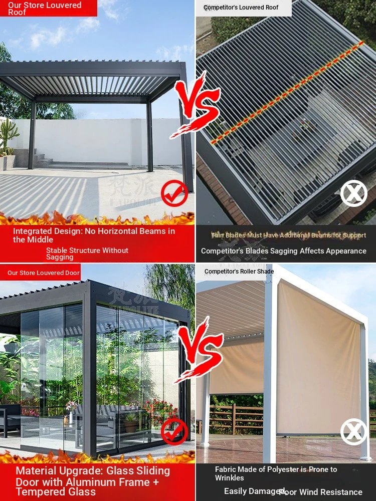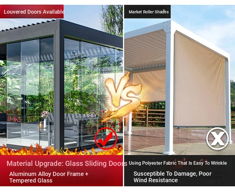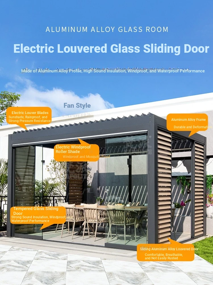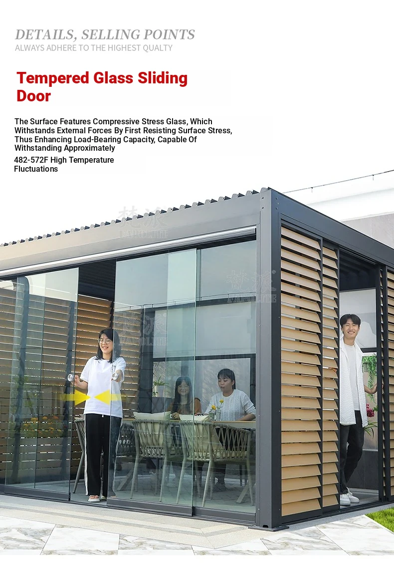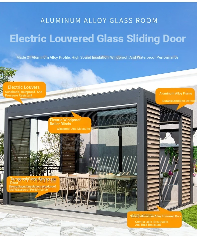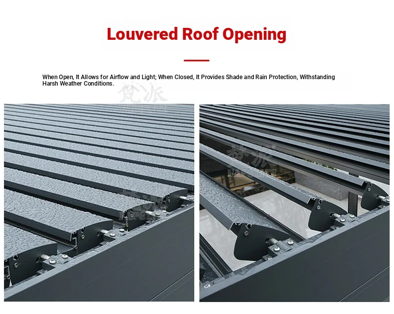 Modern Outdoor Aluminum Alloy Pavilion - Smart Electric Louvered Patio Awning for Gardens and Villas, Perfect for Sun Protection and Relaxation in Your Backyard.