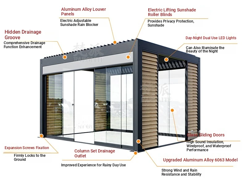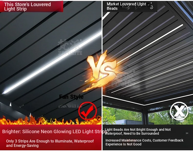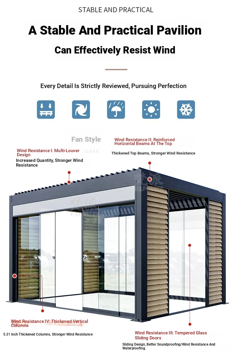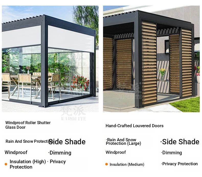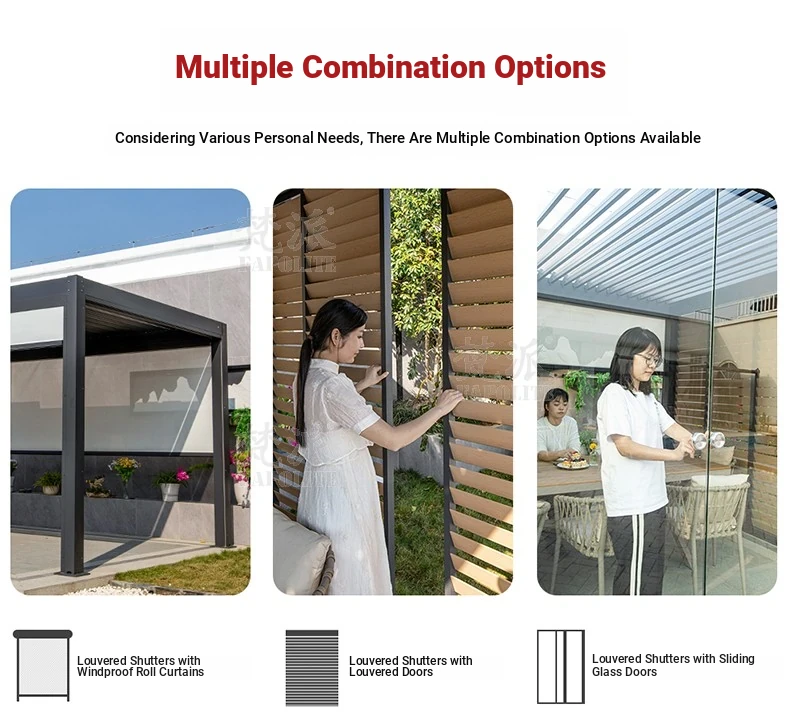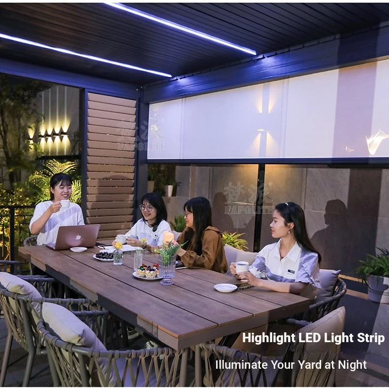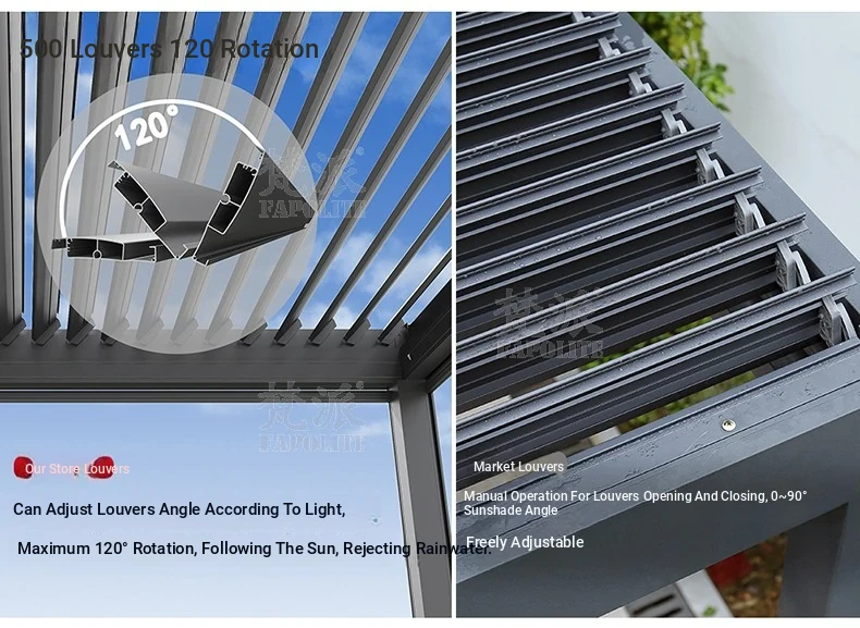 Modern Outdoor Aluminum Alloy Pavilion - Smart Electric Louvered Patio Awning for Gardens and Villas, Perfect for Sun Protection and Relaxation in Your Backyard.