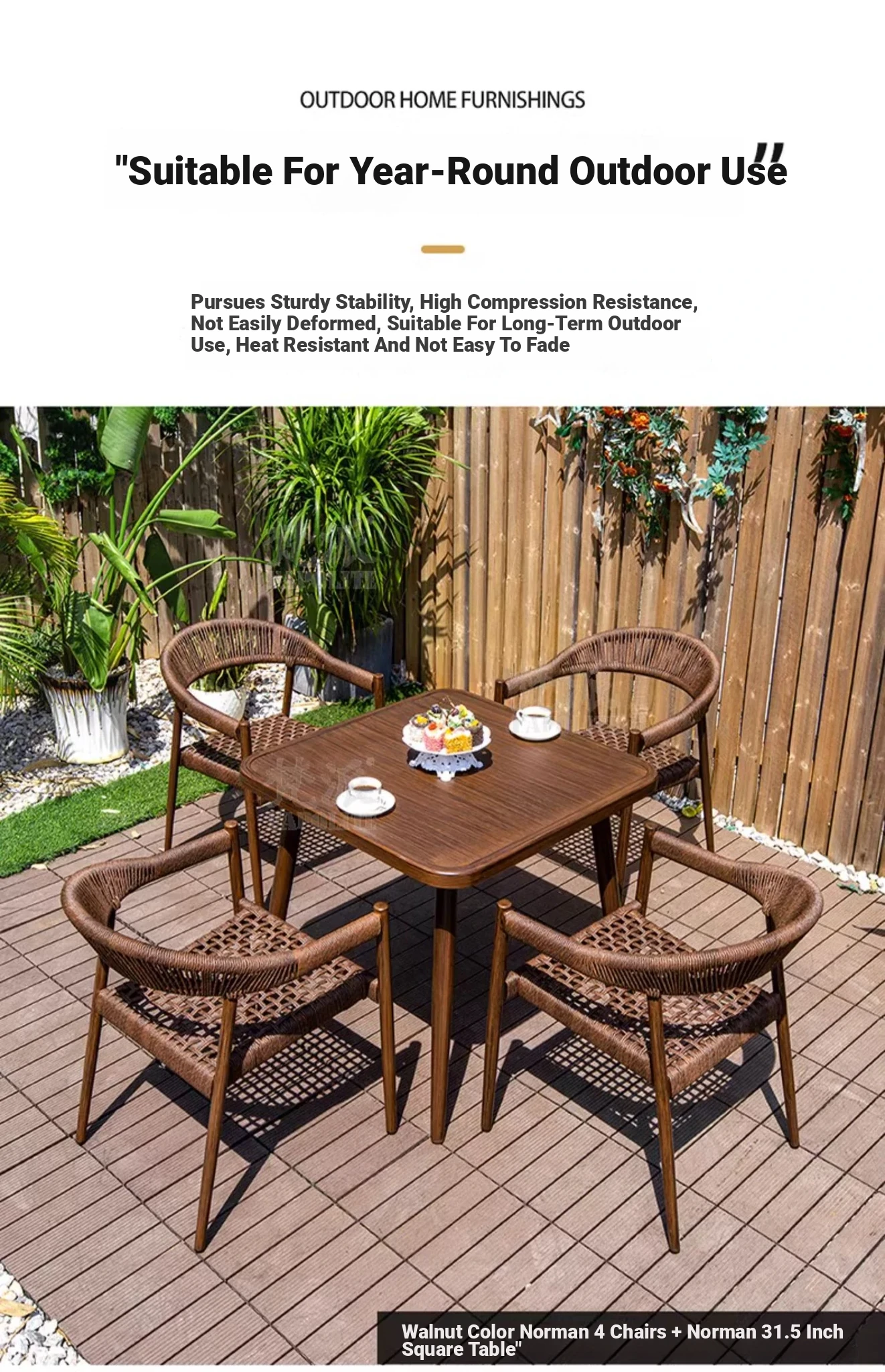 [Log color] 4 chairs + Norman 80*80 square table
