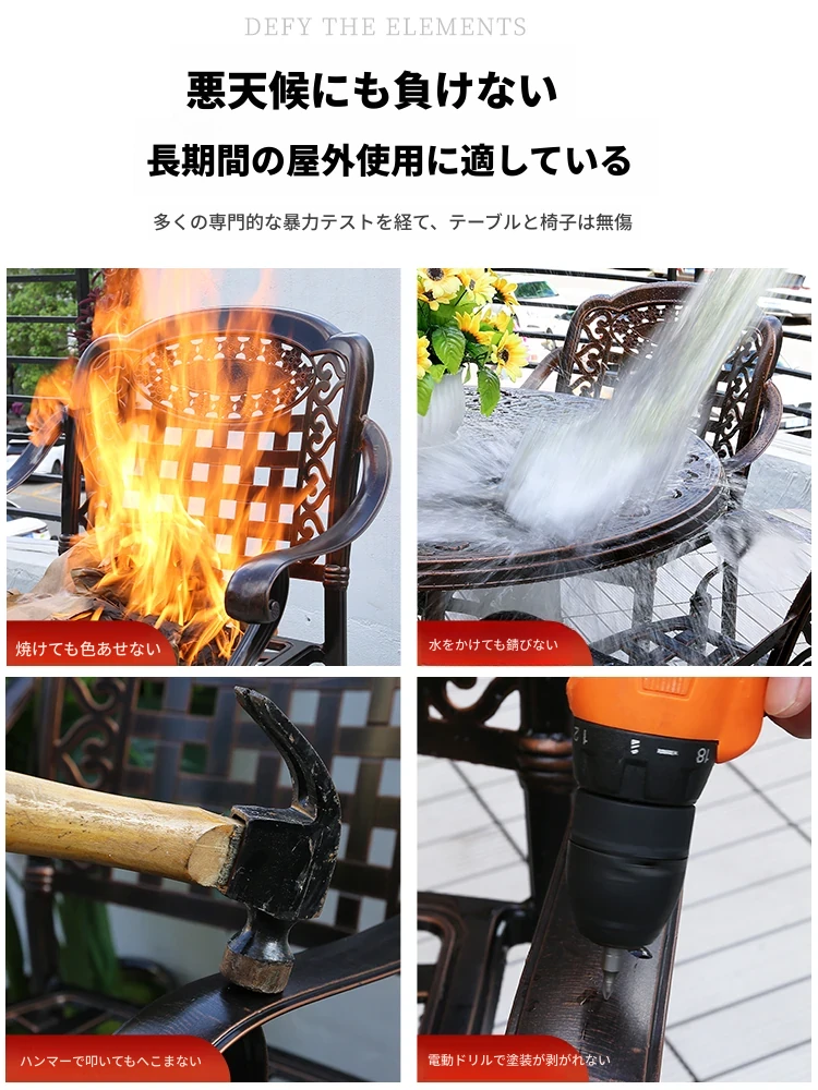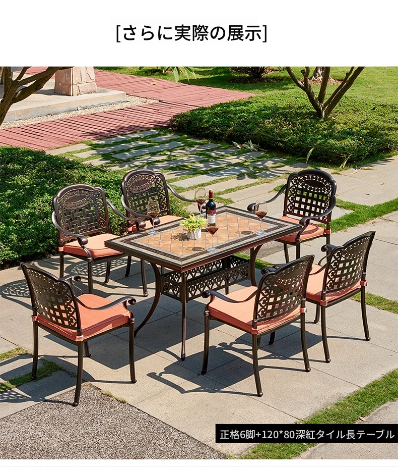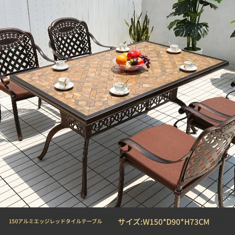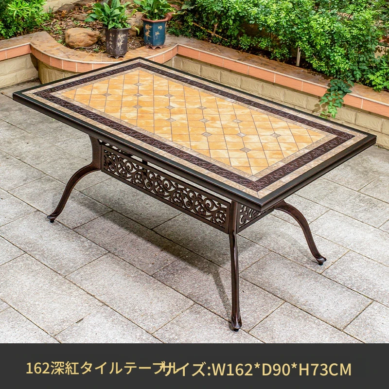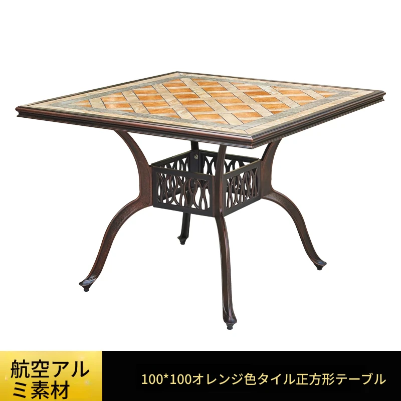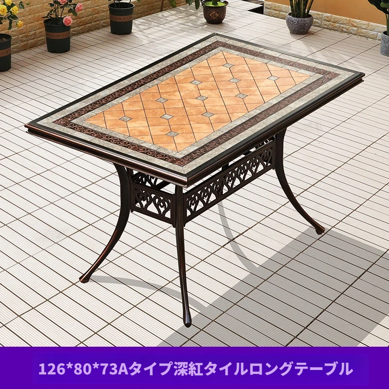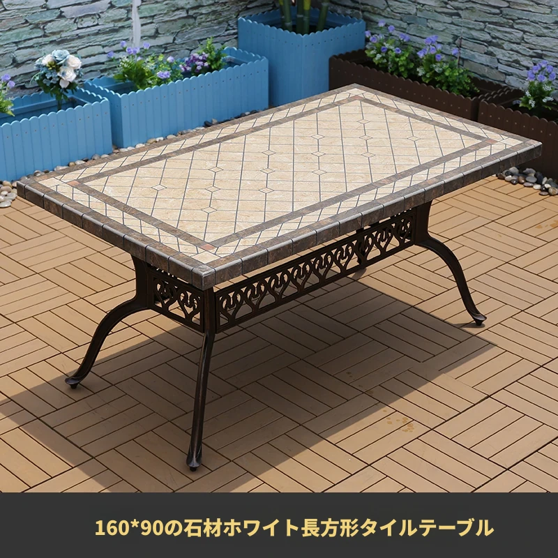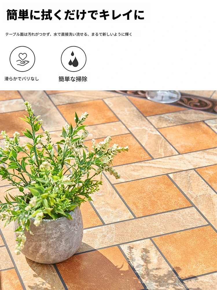 アウトドア用アルミ鋳物タイルテーブルセット – 庭やテラスに最適な大理石風デザイン!家庭用の防水・防晒機能付きで、快適なリラックスタイムを提供します。