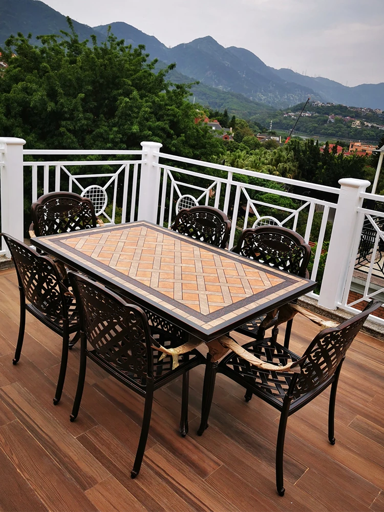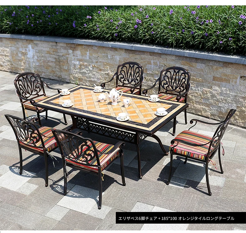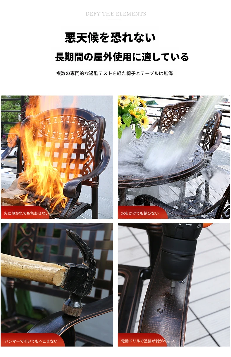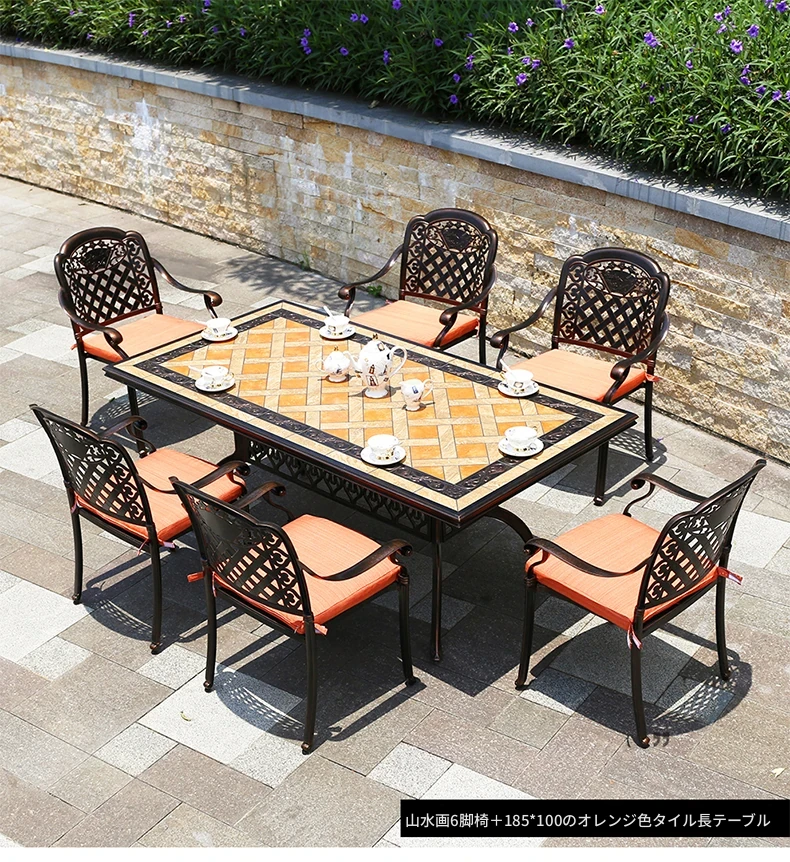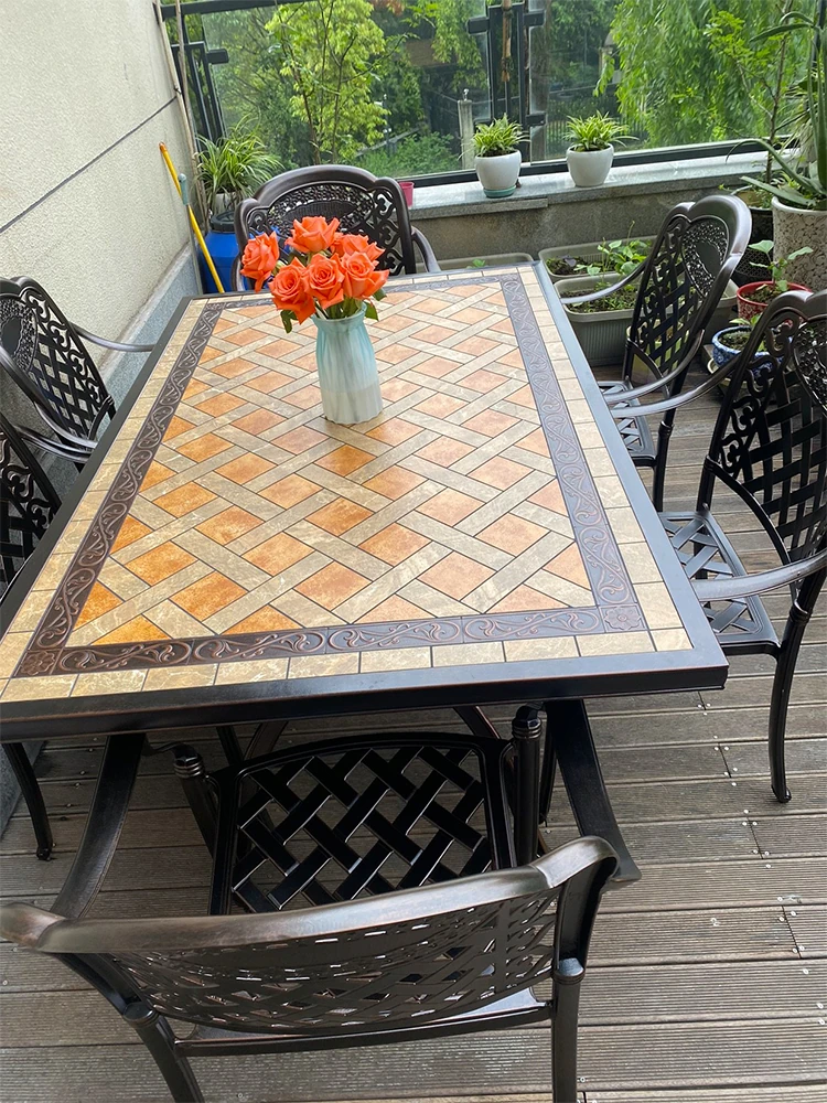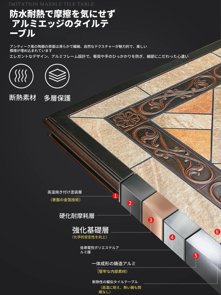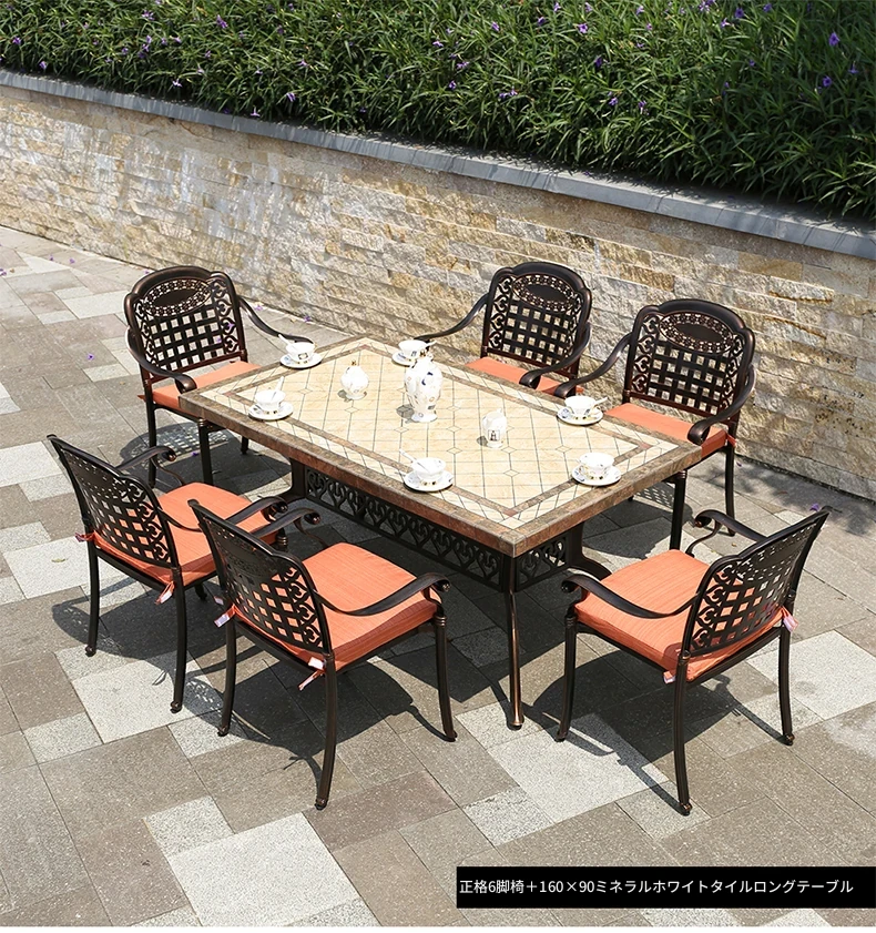 アウトドア用アルミ鋳物タイルテーブルセット – 庭やテラスに最適な大理石風デザイン!家庭用の防水・防晒機能付きで、快適なリラックスタイムを提供します。
