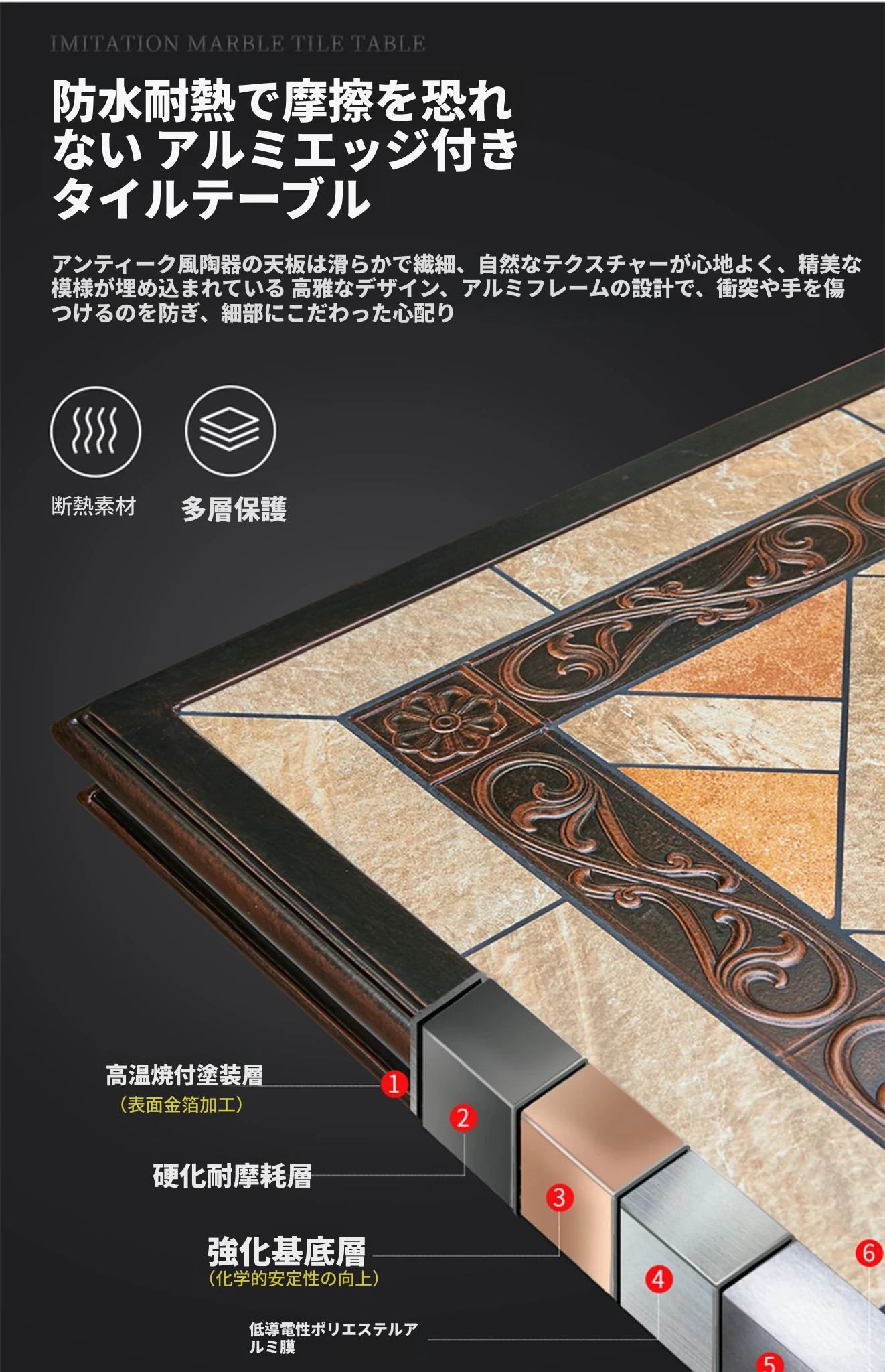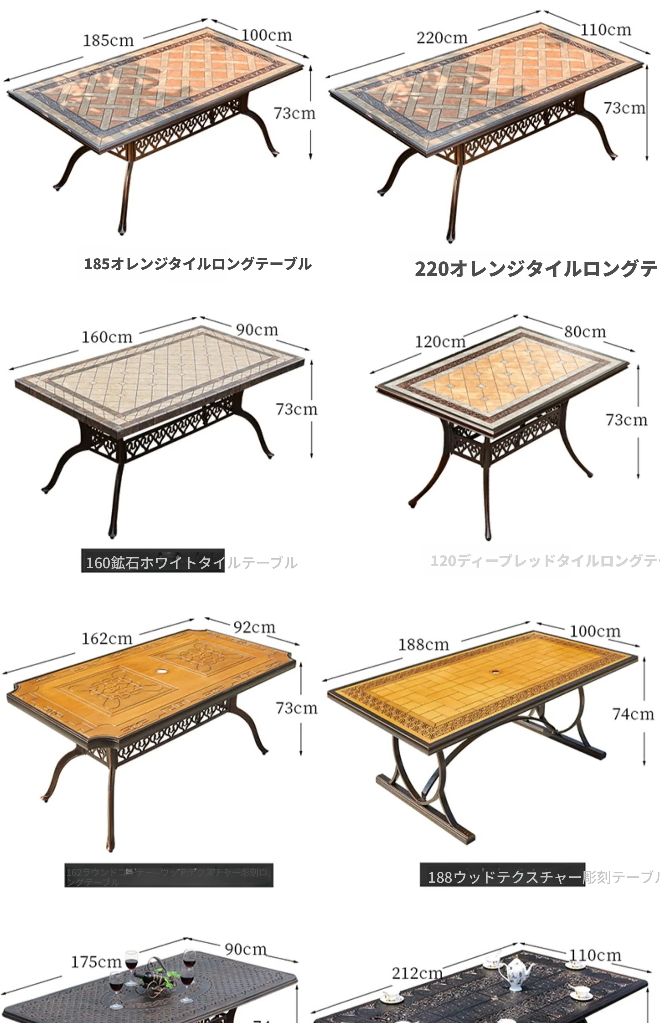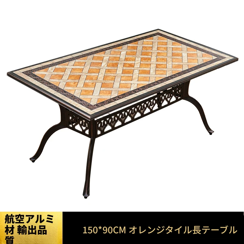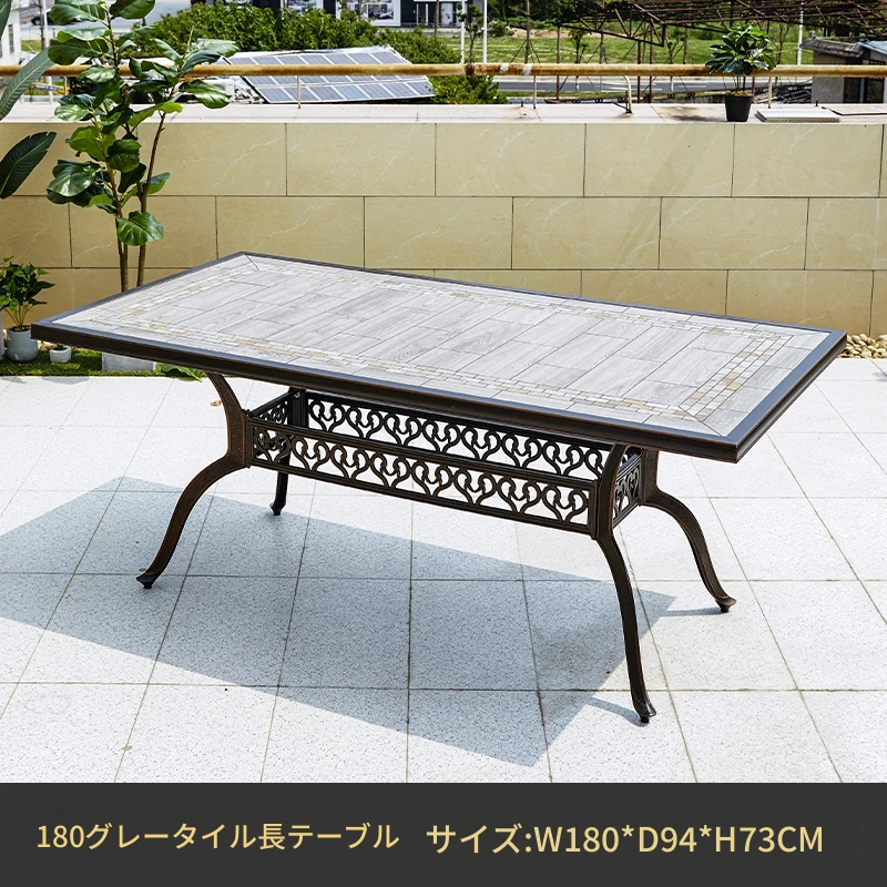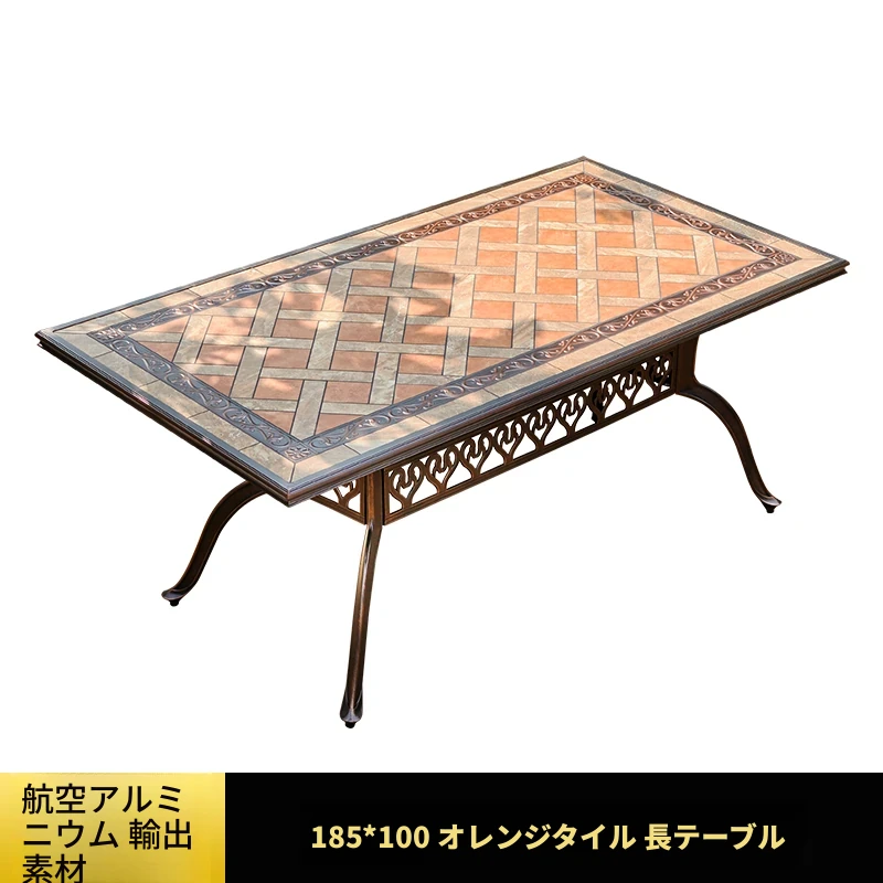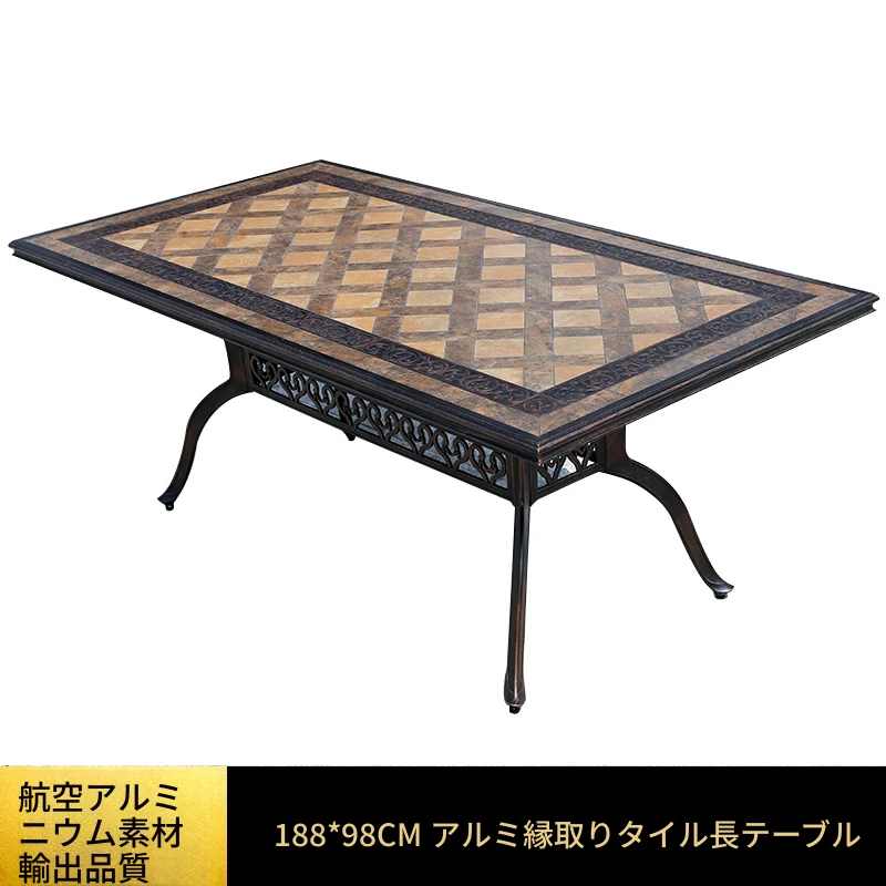 188x98アルミエッジ付きタイルの長テーブル