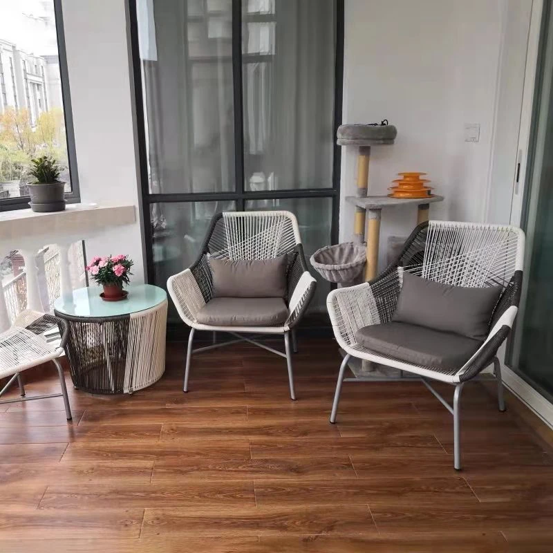 バルコニー用小型テーブルセット|テーブル1つと椅子2つ|アウトドアにぴったりな北欧スタイルのリラックスチェア|庭やガーデンで楽しむ3~5人用のラタン家具セット