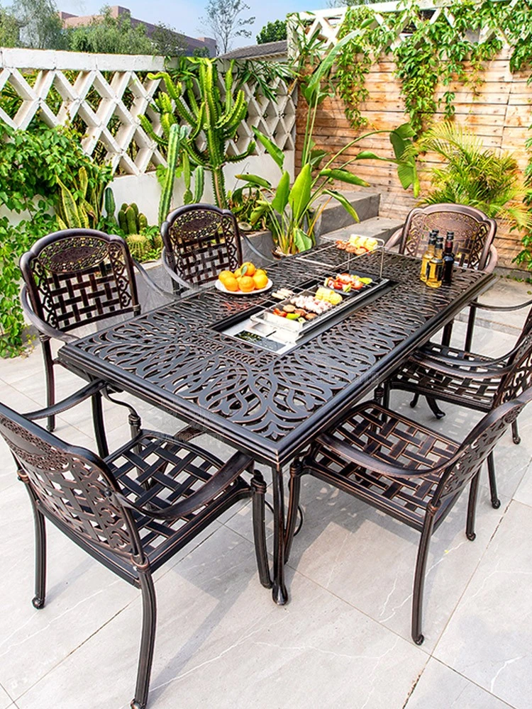 ヴァンパイ アウトドア バーベキュー テーブル&チェア セット - エレガントな庭に最適な電気グリルテーブル、アルミ合金製で耐久性抜群、贅沢な別荘の庭での家族や友人との楽しいひとときを演出します!