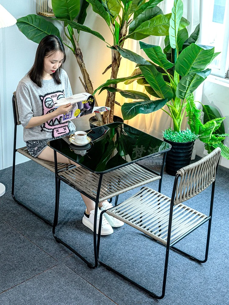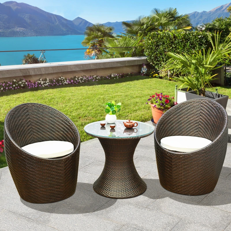 おしゃれな藤製カフェテーブルセット|アウトドア用防水・日焼け防止のアイアン製|ティーショップや庭に最適なリラックスチェア&テーブルセット!