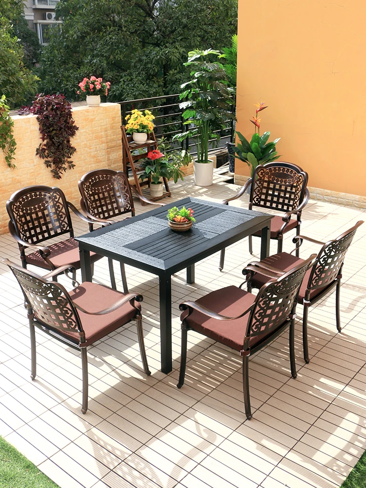 防腐加工のアルミ製アウトドアテーブル&チェアセット!ガーデン、パティオ、バルコニーに最適なスタイリッシュなアイアンファニチャーで、リラックスしたひとときをお楽しみください。耐久性抜群で、美しいデザインが魅力的です!