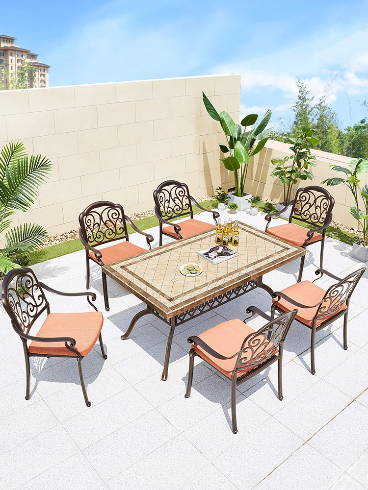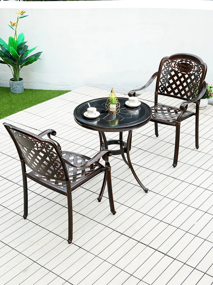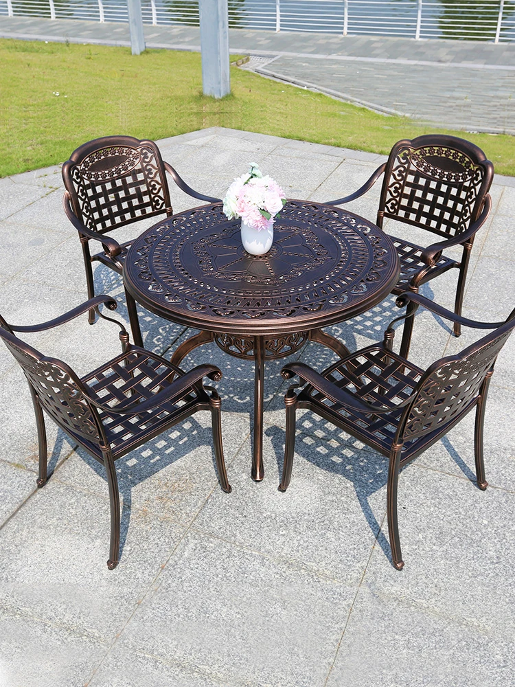 欧風デザインの鋳造アルミ製アウトドアテーブル&チェアセット - ヴィラや庭にぴったりなリラックス空間を演出!屋外バルコニーや庭でのくつろぎタイムをお楽しみください。