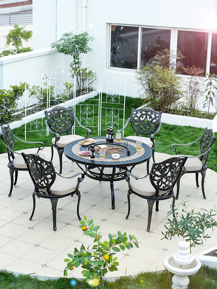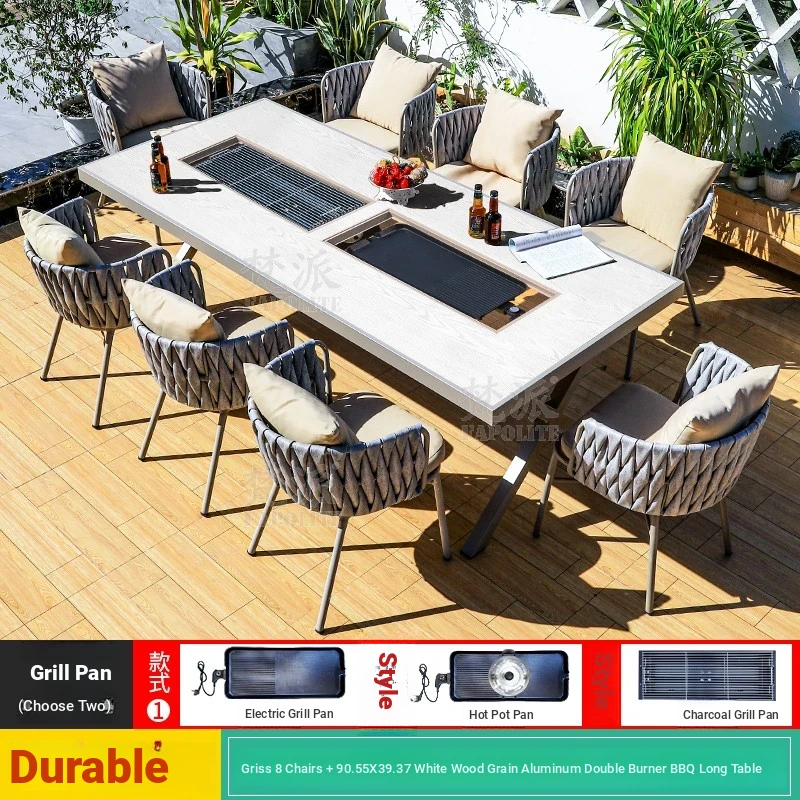 Vangpai Outdoor Patio Dining Set - Versatile BBQ Electric and Charcoal Grill Table for Villas and Gardens - Durable Aluminum Alloy Furniture for Your Outdoor Space