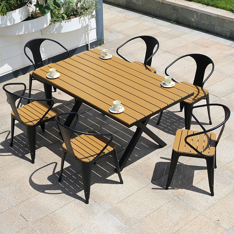 Outdoor Waterproof Wood-Plastic Table and Chair Set - Stylish and Durable Patio Furniture for Balconies, Gardens, and Cafés. Perfect for Relaxing in Any Weather!