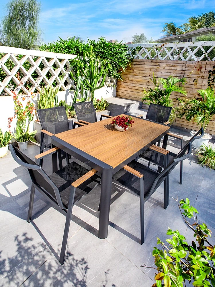 Outdoor Aluminum Alloy Single Chair and Dining Table Set - Perfect for Garden, Balcony, and Patio Relaxation - Weather-Resistant, Durable Wood-Plastic Composite for Your Courtyard Enjoyment.
