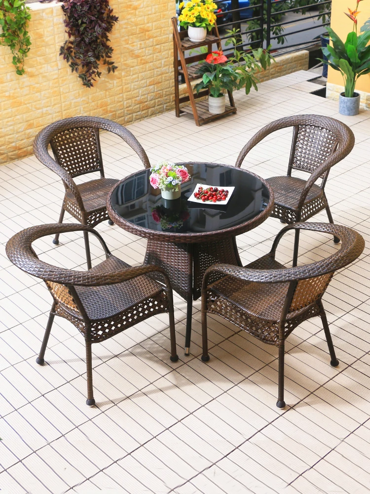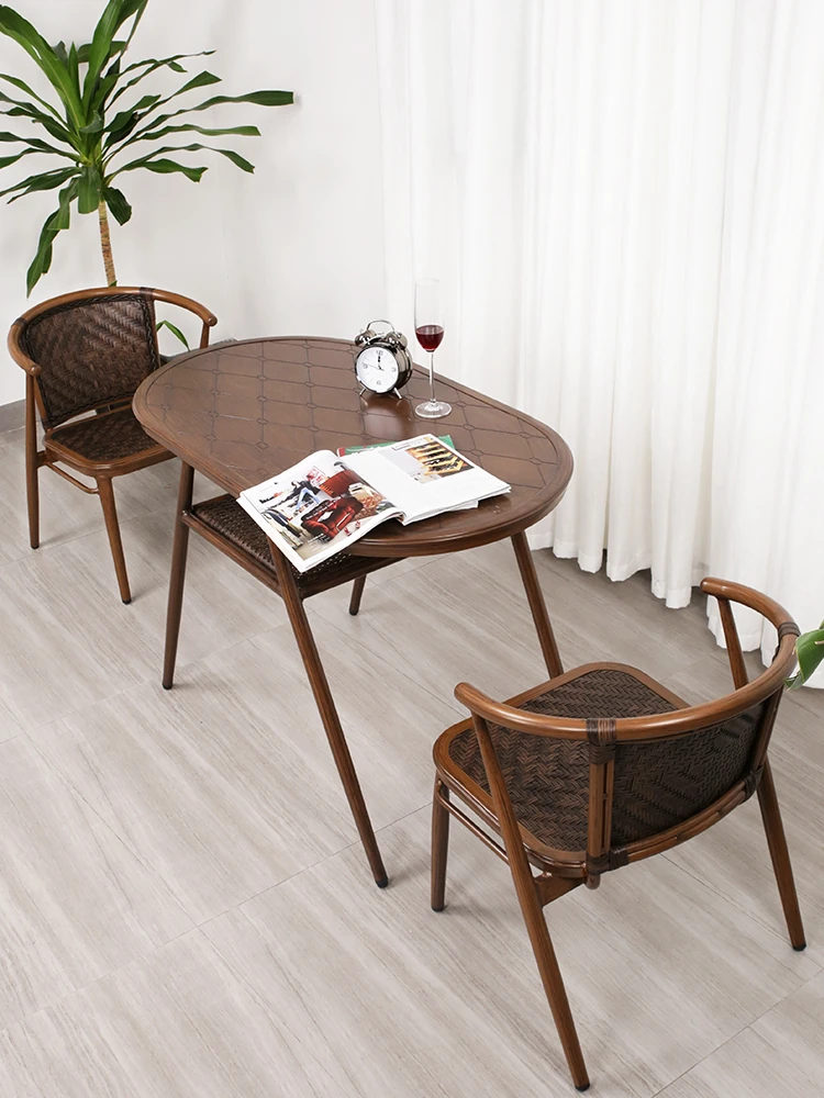 VANPA Outdoor Furniture Set - 3-Piece Minimalist Chinese-Style Tea Table and Chair Combo for Relaxing on Balconies, Gardens, and Patios - Includes Stylish Rattan Chairs